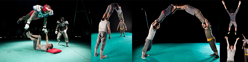 Avec I Acrobates Frédéric Arsenault, Alexandre Fray, Pierre Glottin et Mika Lafforgue. Mise en scène : Pierre Déaux. Dramaturgie : Bauke Lievens. Création sonore : Jean-Damien Ratel. Création lumière : Thierry Robert. Equipe technique : Cécile Hérault, Olivier Fauvel, Kiki Laporte. Accompagnement : Peggy Donck.