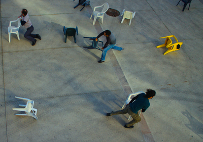 Spectacle pour 8 danseurs et 1 musicien liveAccumulation, empilement. Les danseurs, par la manipulation et la transformation, apparaissent comme des personnages étranges ; évocations d’hommes ou de femmes venus d’ailleurs, de petits territoires mesurés et conquis. Une métamorphose qui invite le spectateur à imaginer sa propre histoire à travers ce qui se construit, se transforme sous ses yeux… sans évidence.