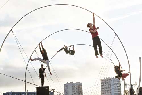 Constellation humaine. Six femmes en apesenteur sur une structure monumentale de 7m de hauteur.