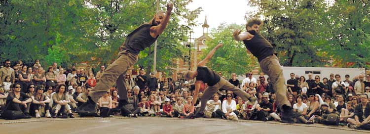 La compagnie Tango Sumo a été créée en mars 2002 par Olivier Germser. Scénographies surprenantes, chorégraphies dont les influences du théâtre, du cirque et de la musique sont omniprésentes, la danse de Tango Sumo fait appel à des artistes complets. La gestuelle est plutôt taillée dans l’épaisseur. C’est souvent rapide, ça s’appuie dans le sol, ça vient du tréfonds. Des pieds qui battent le bitume et inventent aux corps à corps, dans le dépassement, un geste cru et puissant. A la source même de la danse, comme un exutoire, le Groupe Tango Sumo explore «l’hyperphysicalité». L’originalité de cette compagnie de danse réside dans le fait qu’elle a travaillé principalement pour les arts de la rue et qu’elle a été composée uniquement d’hommes durant six ans. Toujours à la rencontre d’un public nouveau et avec la même énergie que dans la rue, la compagnie propose également ses spectacles pour la salle depuis 2004.