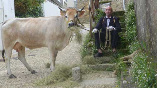 Depuis deux ans, il chemine de ville en ville accompagné de la vache ID.