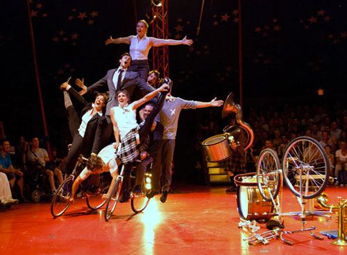 Sous le ciel étoilé de leur chapiteau, les artistes vous invitent à partager leur espace de liberté, celui de la musique et du cirque. Vélo acrobatique, bascule, portés, trapèze, imagination débridée et humour indiscipliné sont au rendez-vous pour faire de ce moment une envolée libre et joyeuse. La musique toujours présente et souvent fusionnelle entrainera le public et les artistes dans un seul et même mouvement. Avec eux ce soir, tout sera possible !