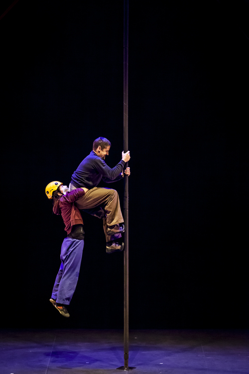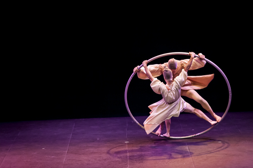 Silvia Capell (Crimen contrarreloj, Cia Capgirades / Violeta, Col·lectiu La Persiana) ajoute au trapèze une nouvelle technique, la roue Cyr. Sergio González (Learning, begining to lose, Atempo Circ / Retalls, GREC Festival de Barcelona 2013 / AAAART, 18è Circ d‘Hivern de l‘Ateneu Popular 9 Barris / Violeta, Col·lectiu La Persiana), qui l’accompagne dans l’exploration de la roue Cyr, est un artiste spécialisé en mât chinois et formé en danse et mouvement.